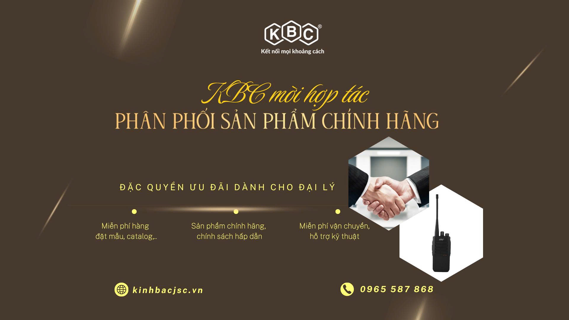 Với mong muốn đưa sản phẩm Việt đến tay người Việt nhiều hơn. KBC tự hào là đơn vị phân phối bộ đàm Make in Vietnam với bề dày kinh nghiệm 15 năm. KBC trân trọng mời anh/chị hợp tác để đưa sản phẩm uy tín - chất lượng đến tay người Việt nhiều hơn nữa. Với những quyền lợi vô cùng hấp dẫn!